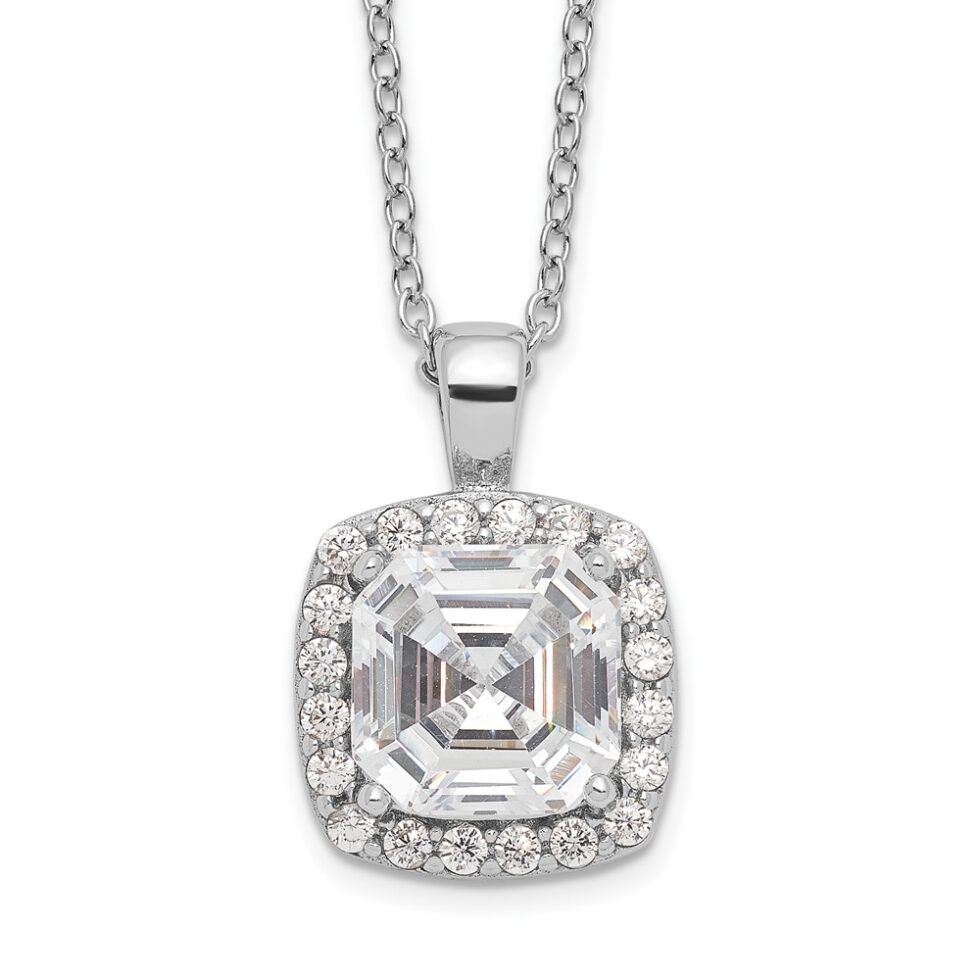 Be the first to review “Sterling Silver Cheryl M Rhodium-plated CZ Square Halo Necklace”