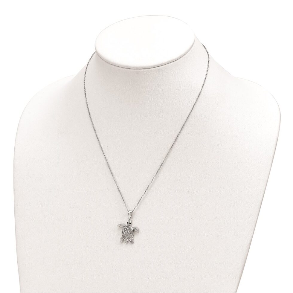 Sterling Silver Cheryl M Rhod-pltd Black Glass & CZ Turtle Necklace