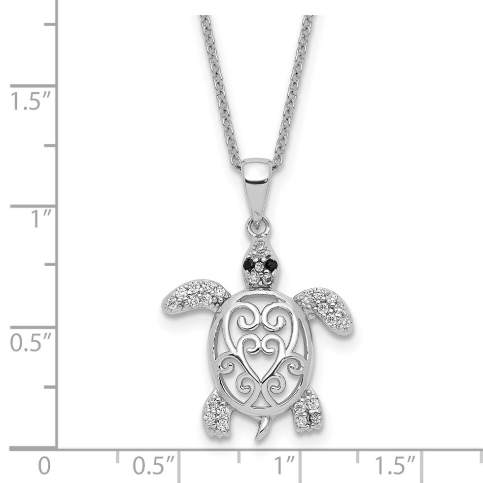 Be the first to review “Sterling Silver Cheryl M Rhod-pltd Black Glass & CZ Turtle Necklace”