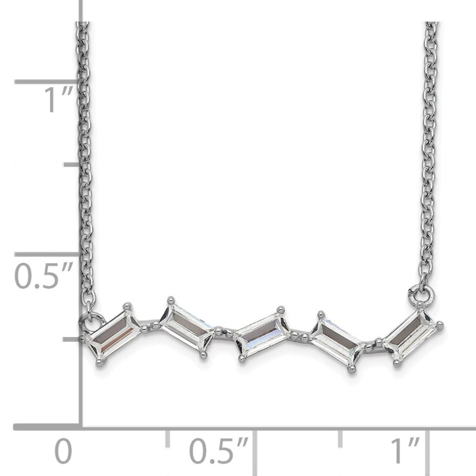 Be the first to review “Sterling Silver Cheryl M Rhodium-plated Emerald-cut CZ Bar Necklace”