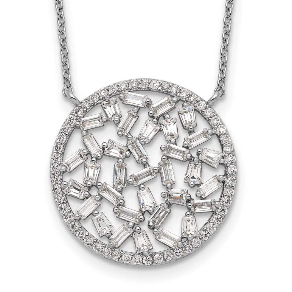 Sterling Silver Cheryl M Rhodium-plated CZ Cluster Circle Necklace