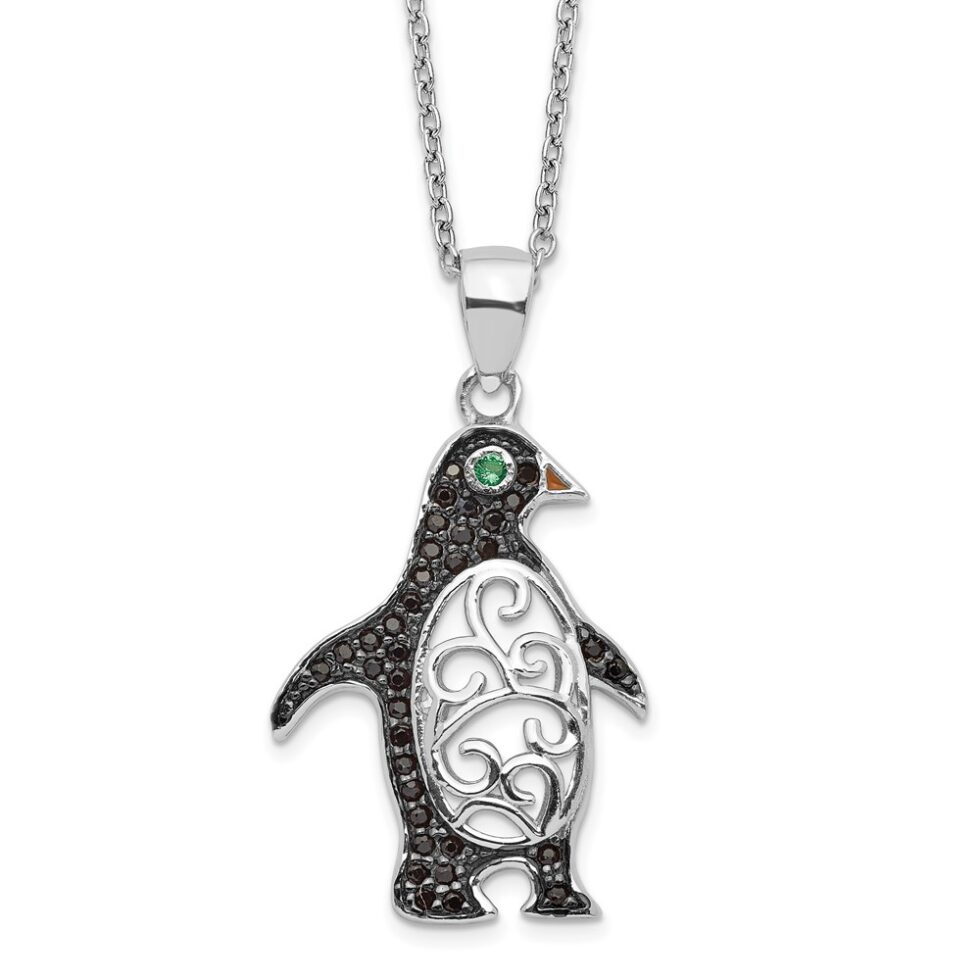 Be the first to review “SS Cheryl M Black Rh-p Black/White CZ Green Glass Penguin Necklace”