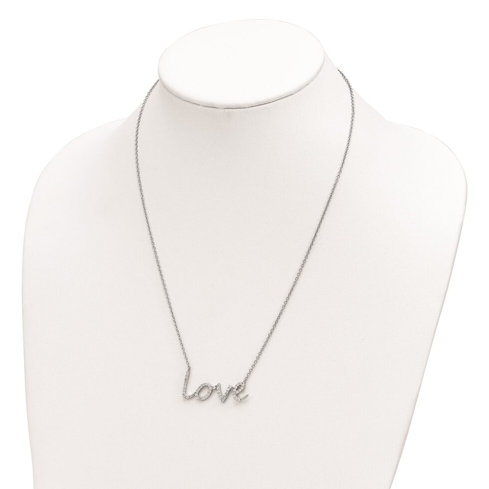 Sterling Silver Cheryl M Rhodium-plated CZ LOVE Necklace