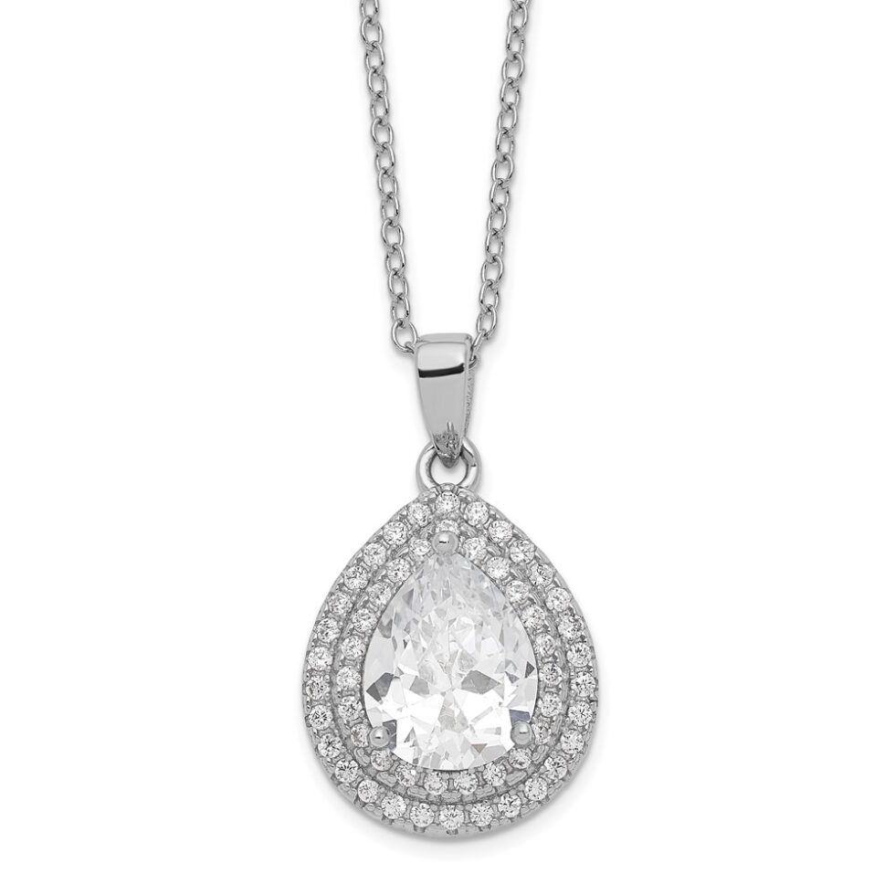 Be the first to review “Sterling Silver Cheryl M Rhod-plated Fancy Pear CZ 2in ext. Necklace”