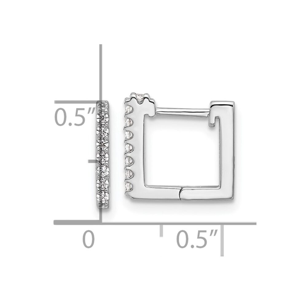 SS Cheryl M Rhodium-Plated CZ Square Hinged Post Hoop Earrings