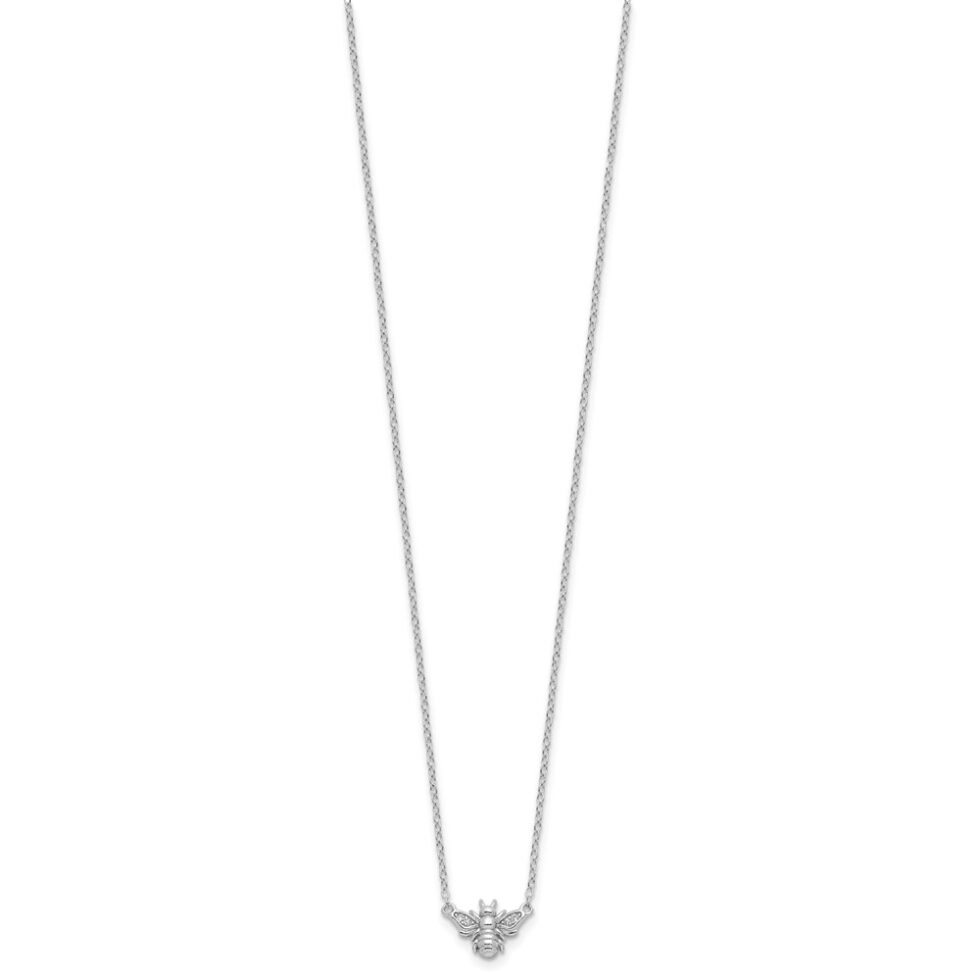 Sterling Silver Cheryl M Rhodium-plated CZ Bee Necklace