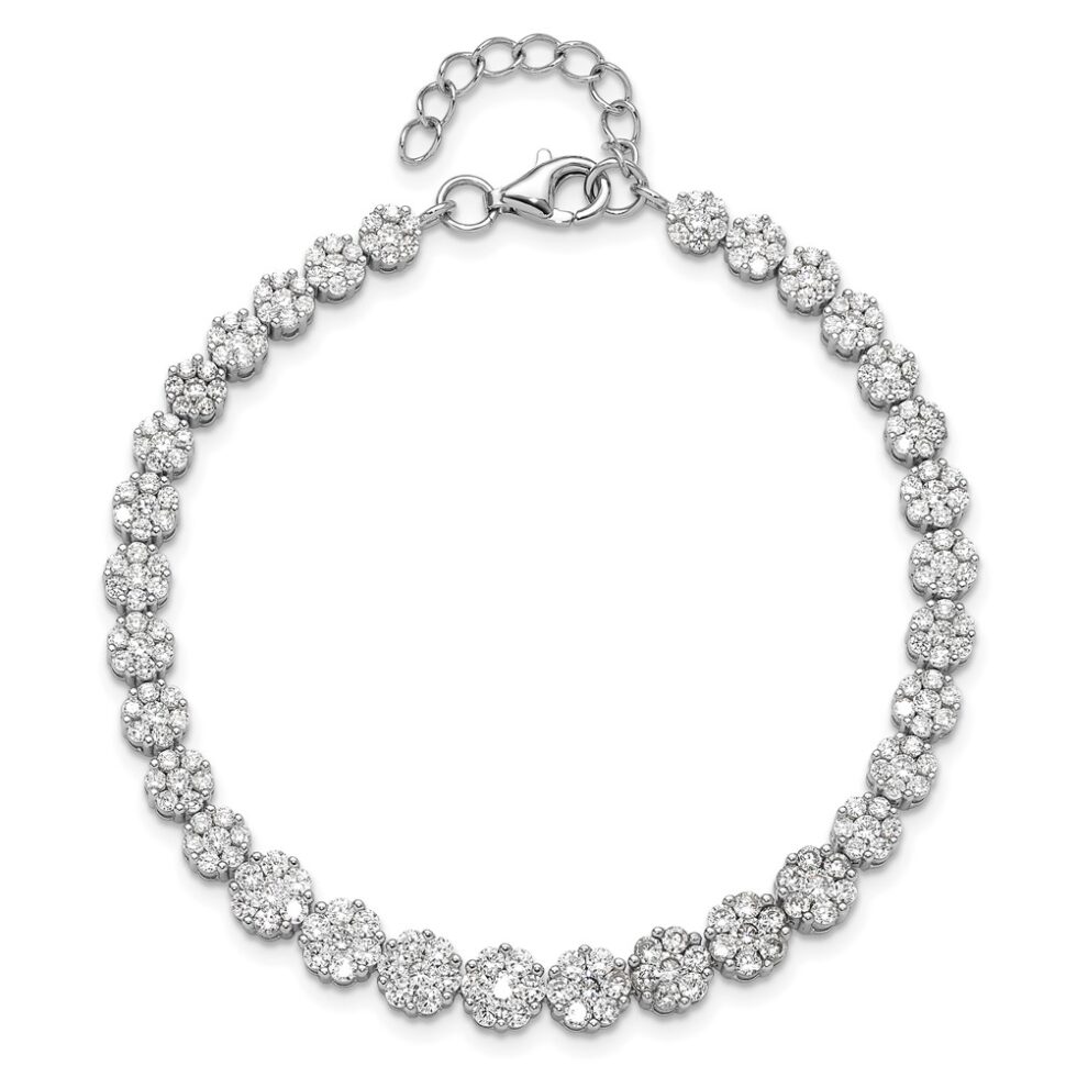 Sterling Silver Cheryl M Rhodium-plated CZ Cluster w/ 1in ext Bracelet