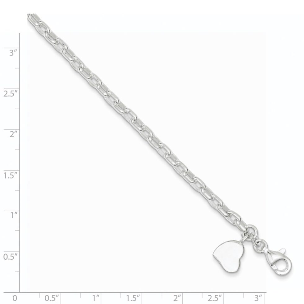 Sterling Silver Small Oval Rolo with Solid Heart Bracelet