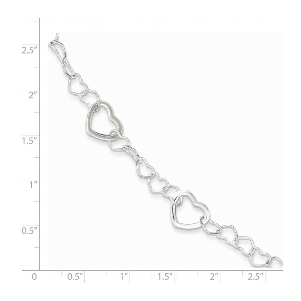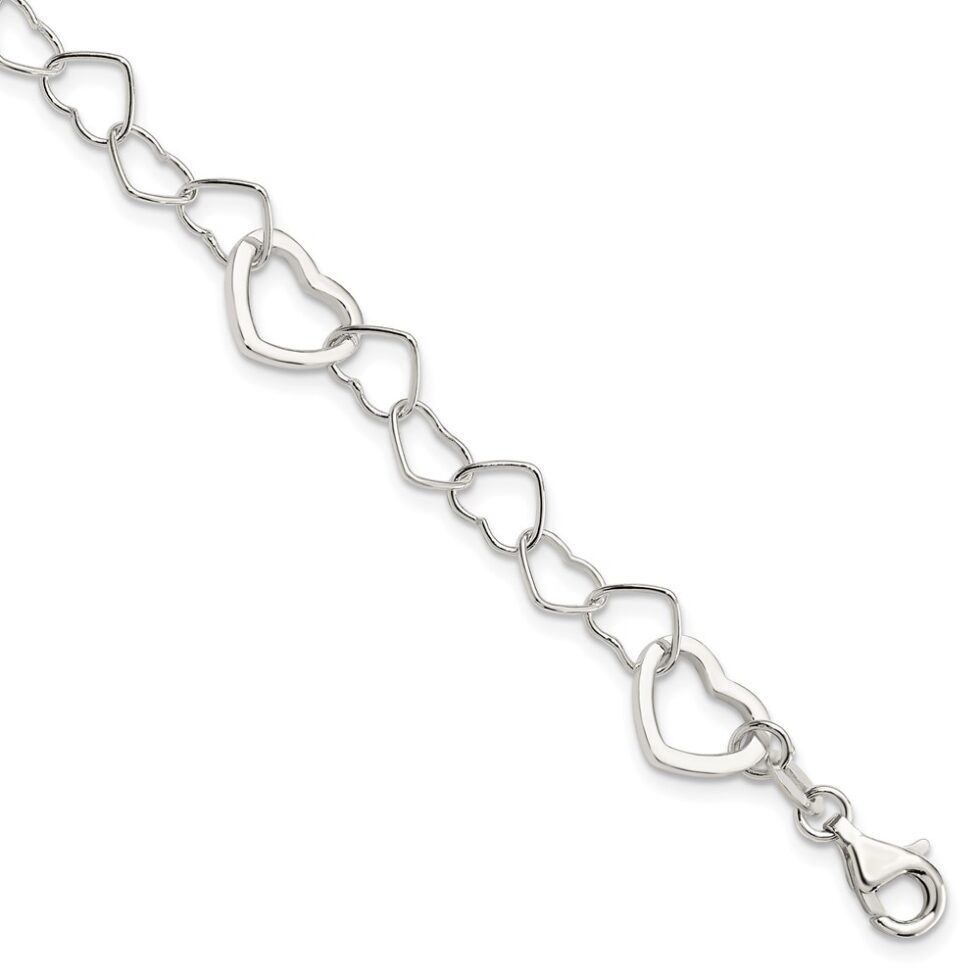 Sterling Silver Polished Fancy Link Heart Bracelet