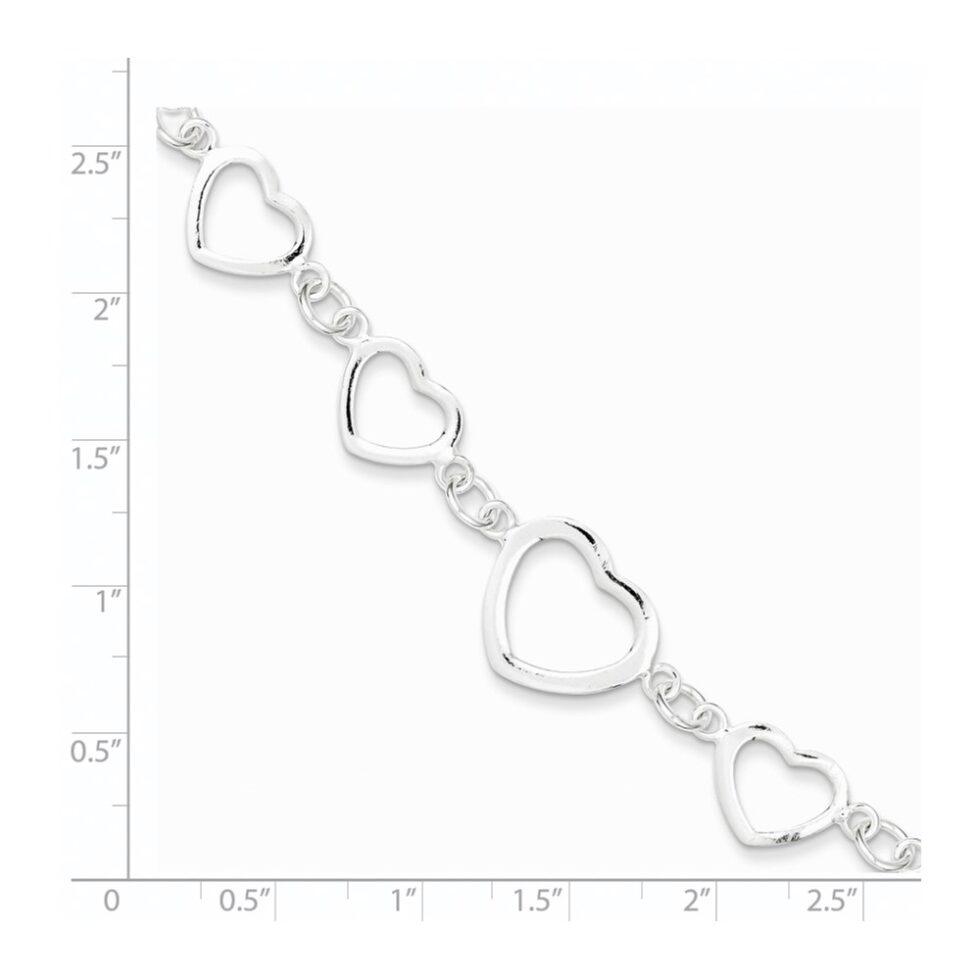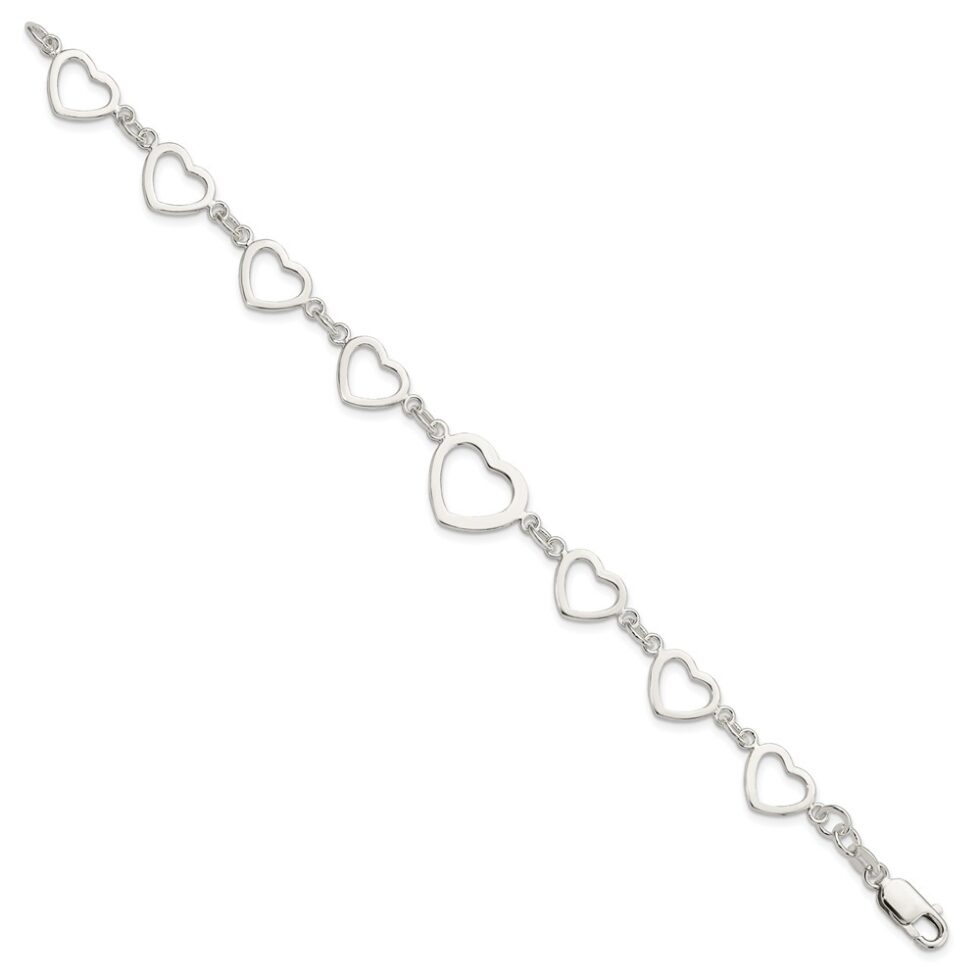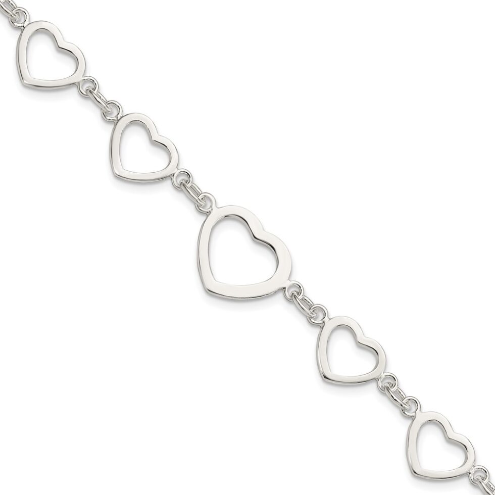 Sterling Silver Polished Heart Fancy Link Bracelet