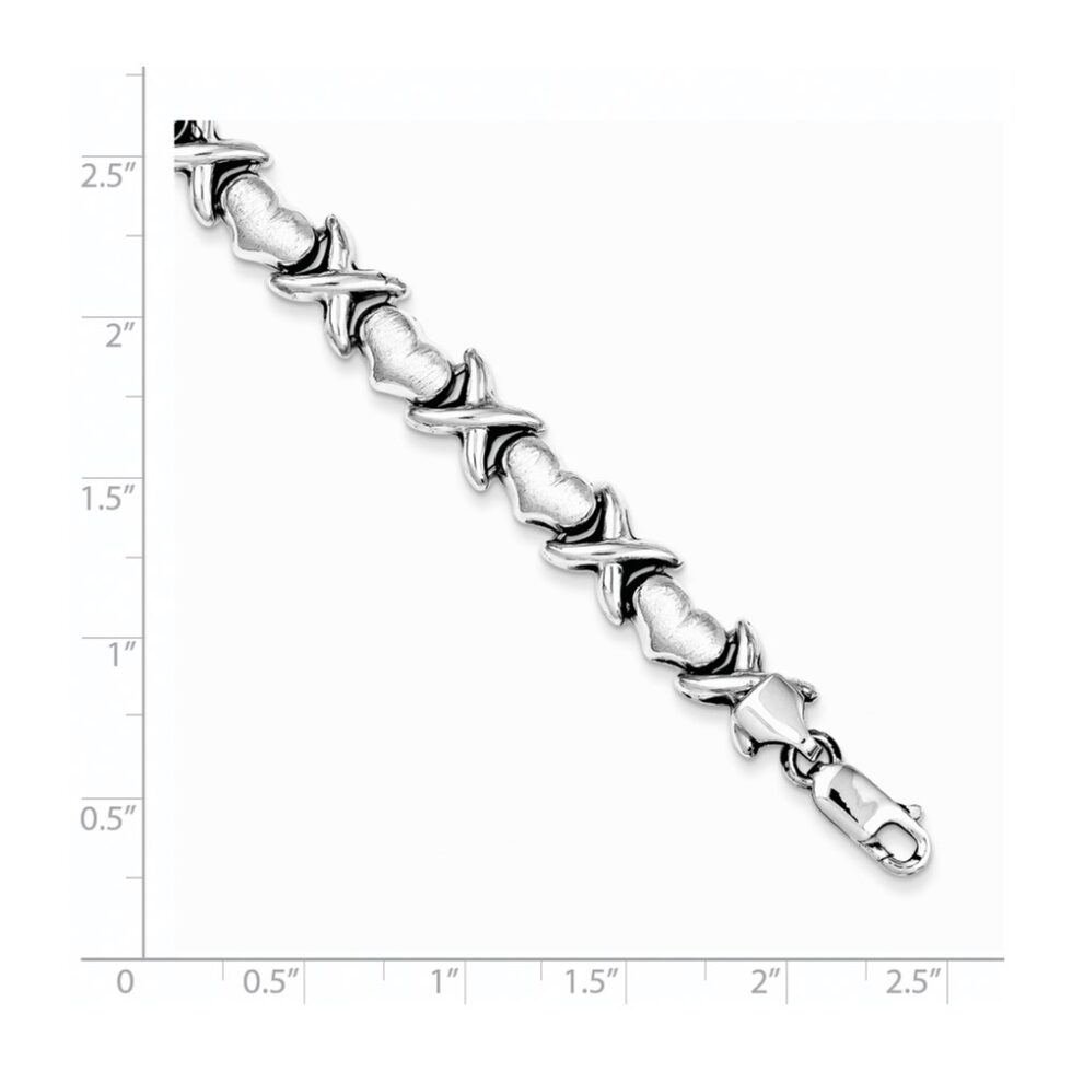 Sterling Silver Rhodium Polished and Brushed X’s and Hearts Bracelet