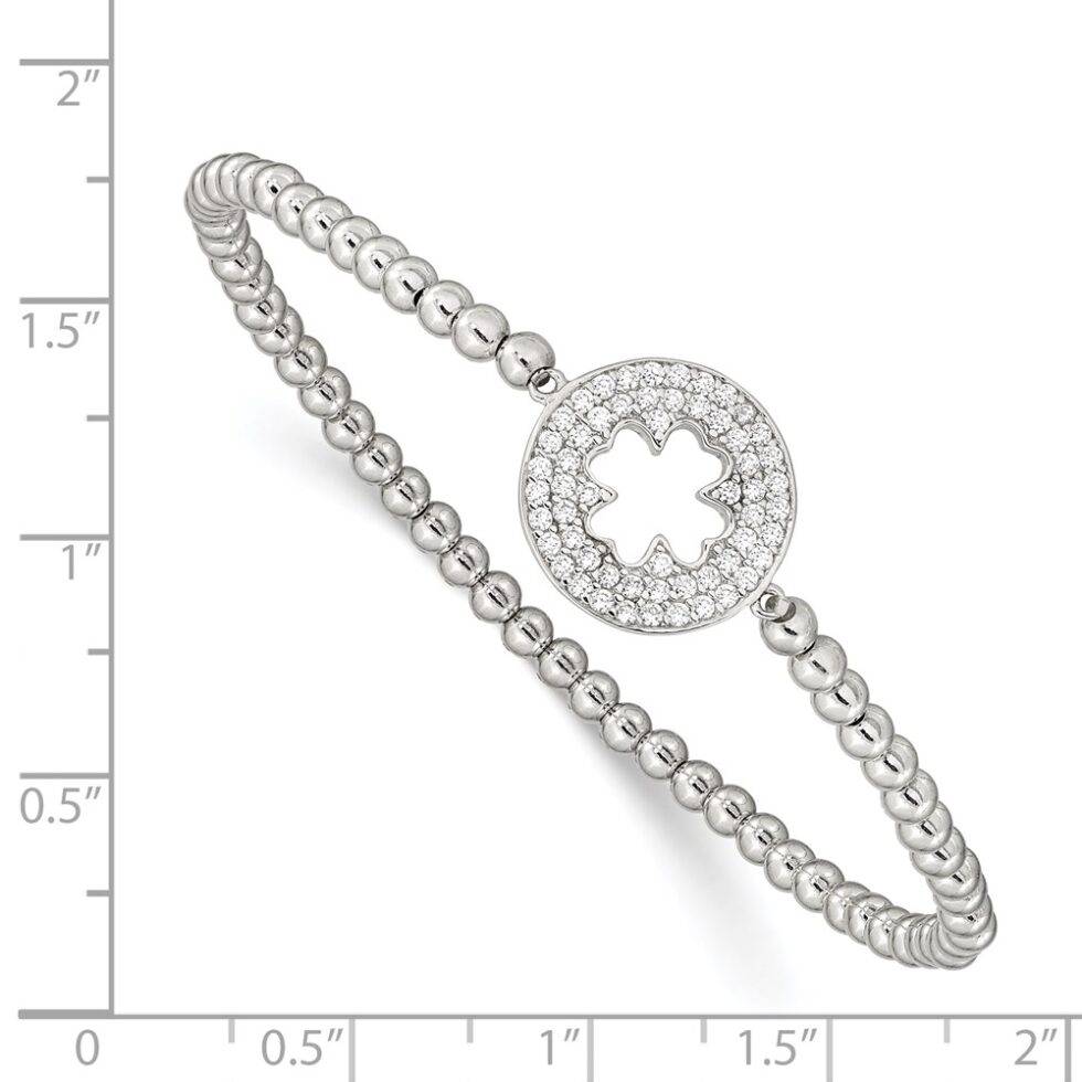 Sterling Silver Polished Beaded CZ cross Stretch Bracelet