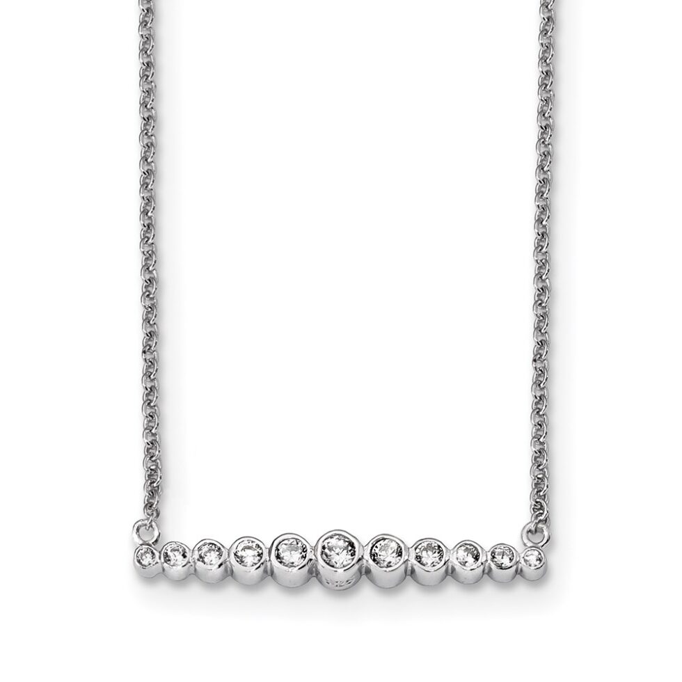 Sterling Silver Rhodium-plated CZ 18in Bar Necklace