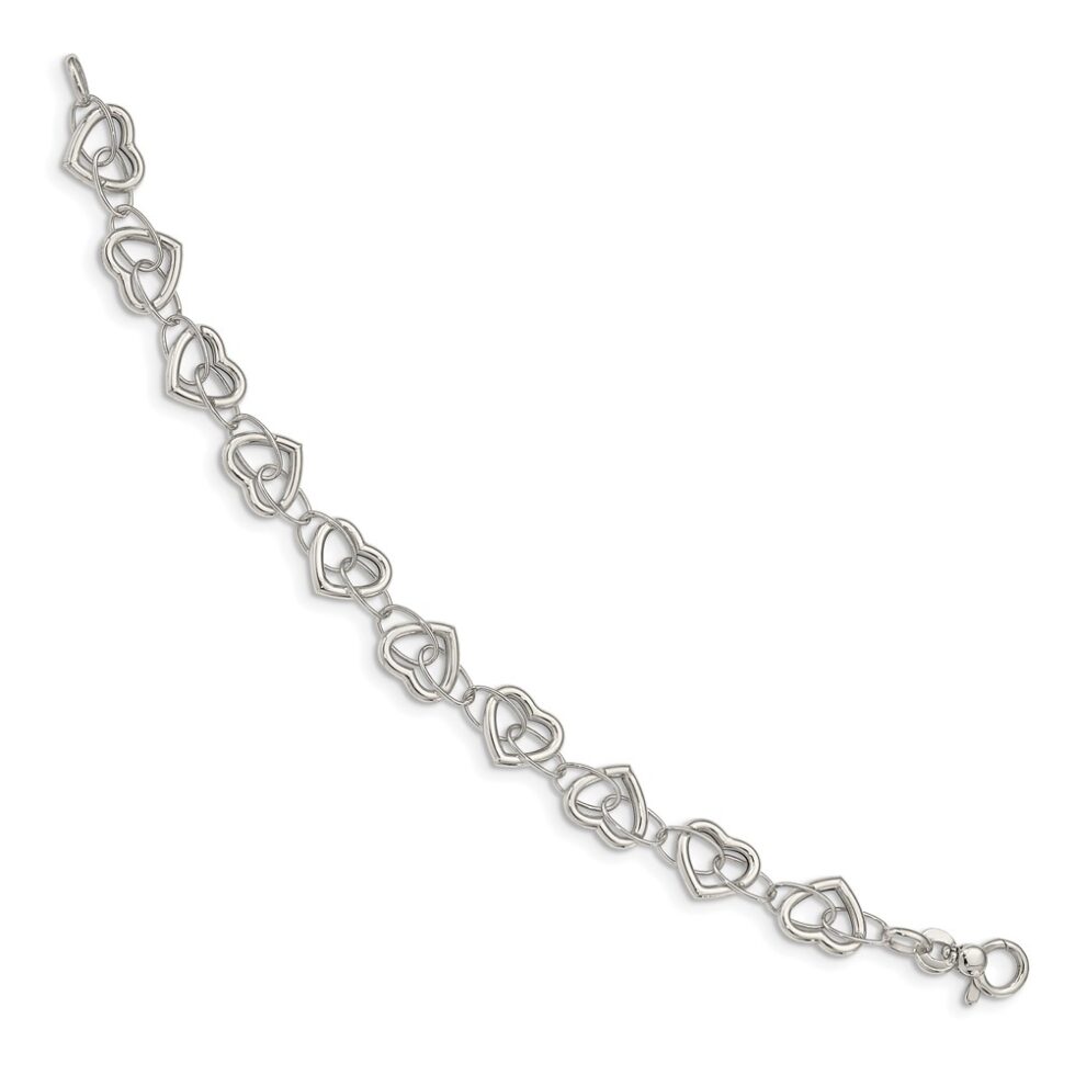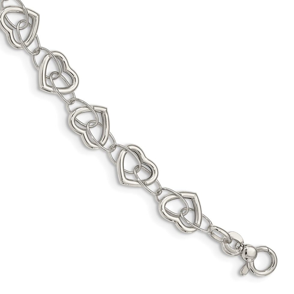 Sterling Silver 7.5in Polished Heart Link Bracelet