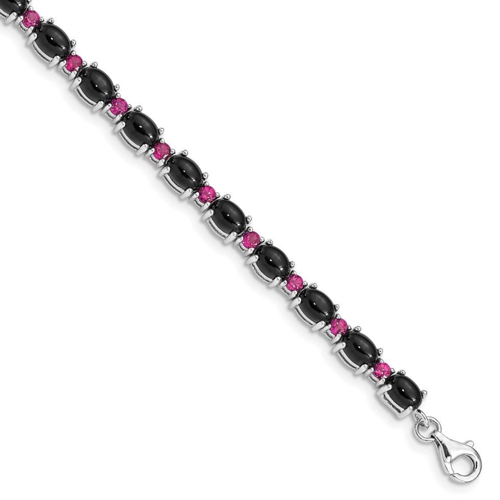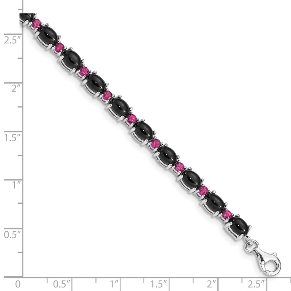 Sterling Silver Rhodium-plated Blk Spinel Cabochon & Rhodolite Bracelet