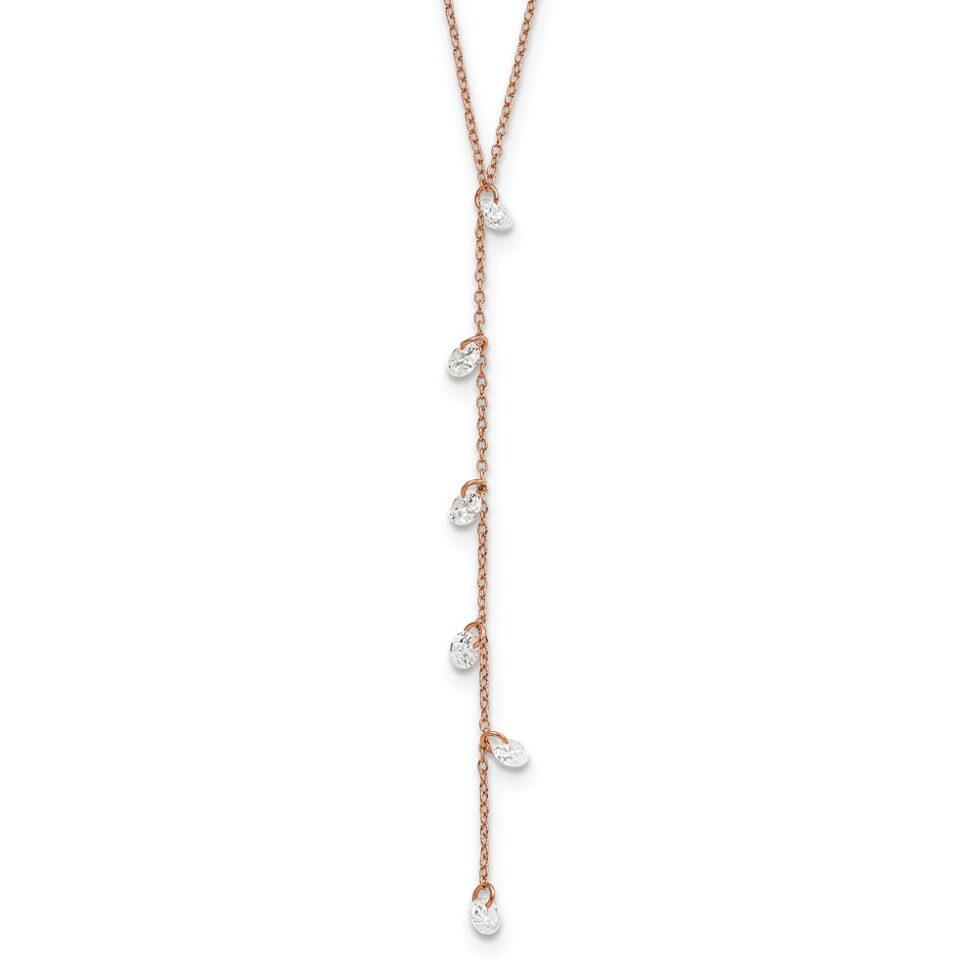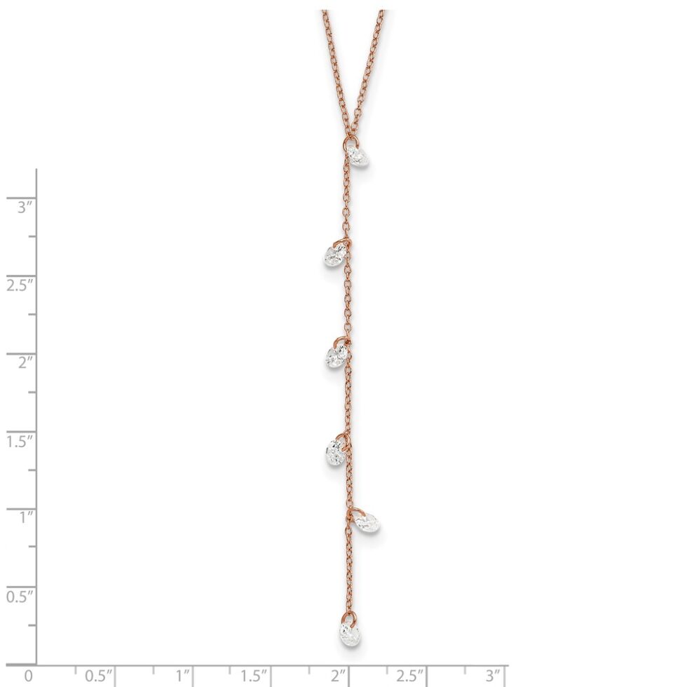 Sterling Silver Rose-tone CZ Dangle w/ 2in ext. Necklace