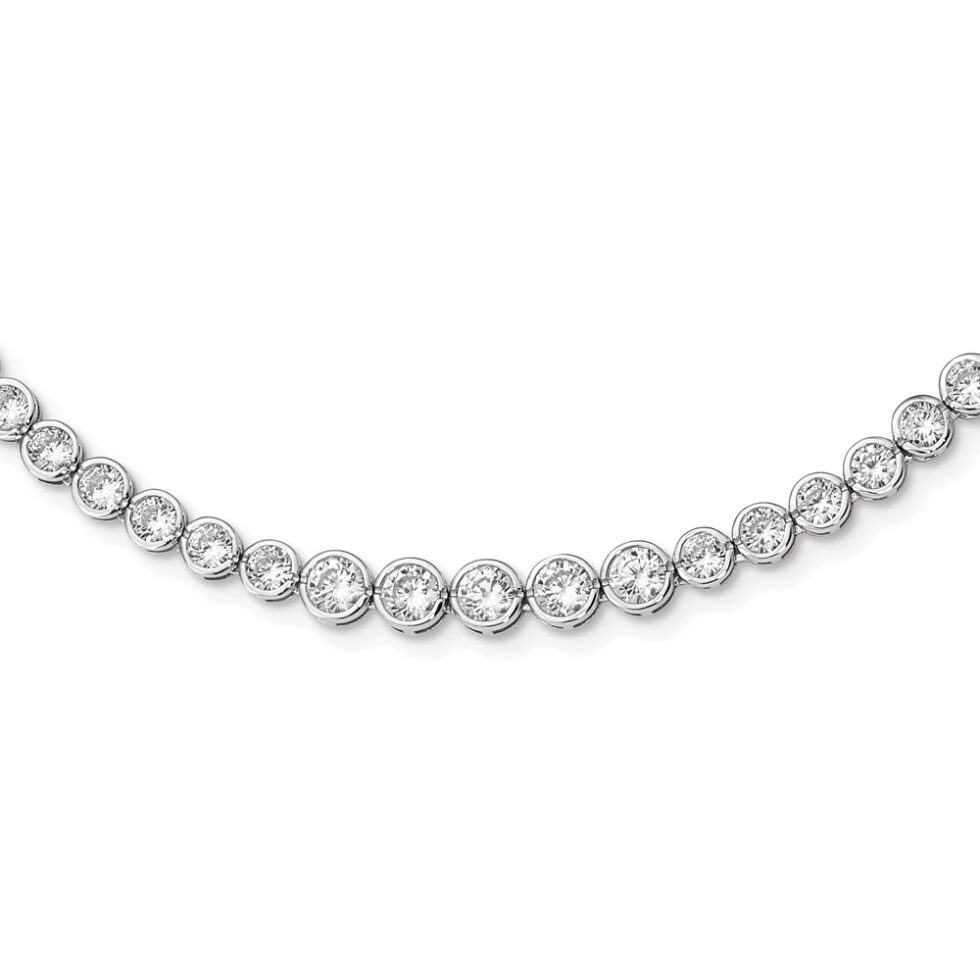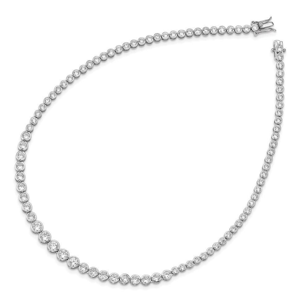 Sterling Silver Rhodium-plated Graduated CZ Necklace