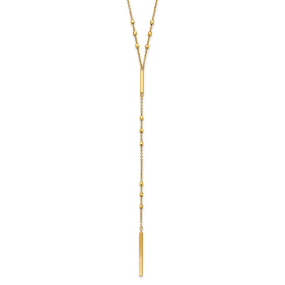 Sterling Silver Gold-tone Square Beads & Vertical Bar w/1in ext. Necklace