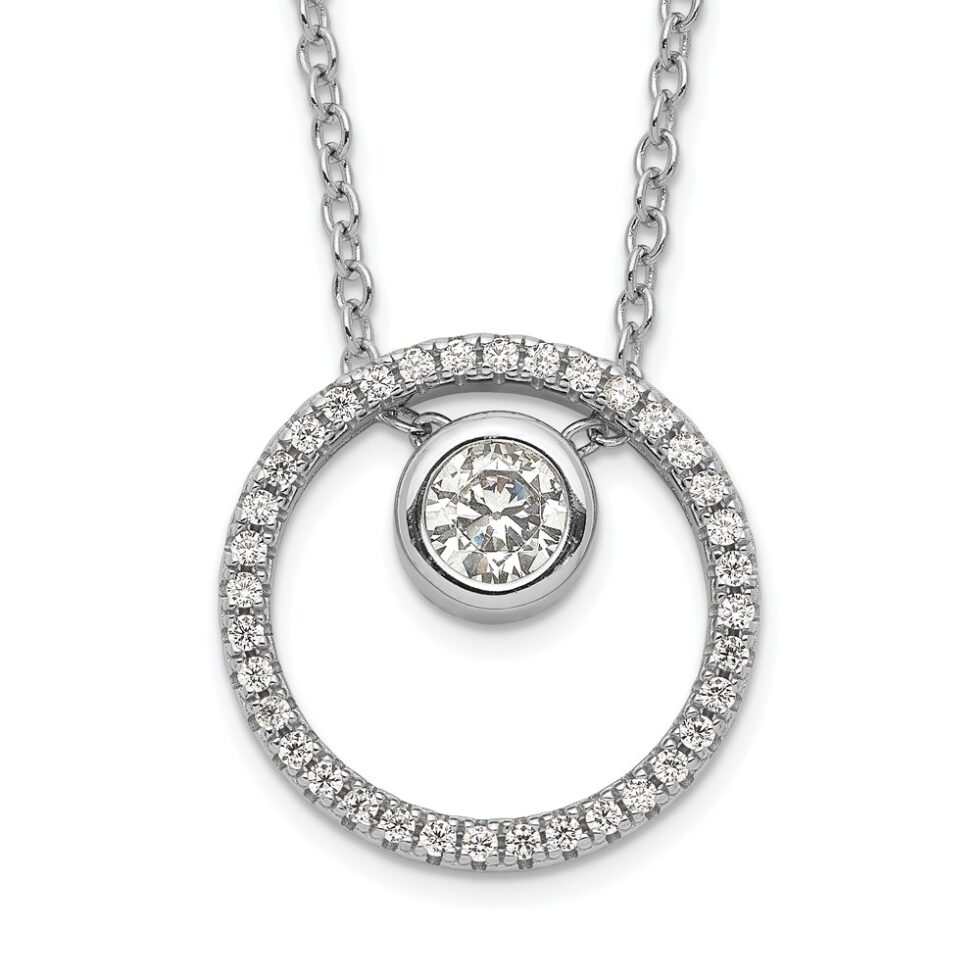 Sterling Silver RH-plated CZ Circle w/1in. Ext. Necklace