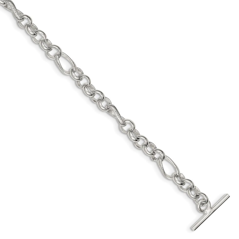 Sterling Silver 7.75inch Polished Fancy Link Toggle Bracelet