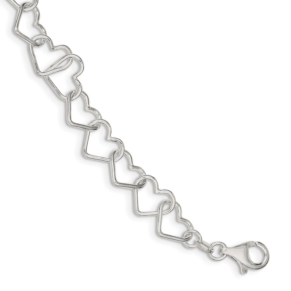 Sterling Silver Polished Fancy Large Heart Link Bracelet