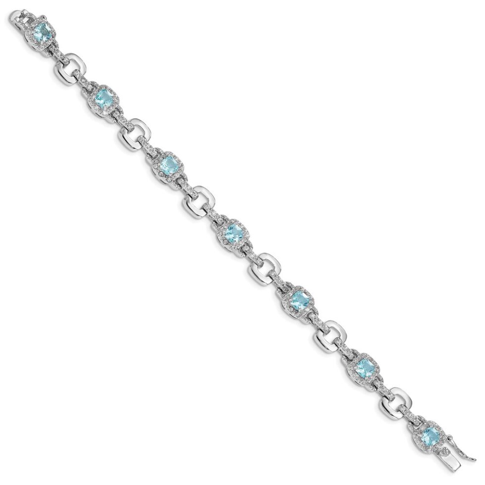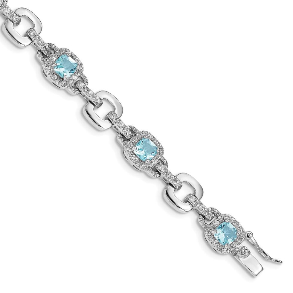 Sterling Silver Rhodium Plated Blue & Clear CZ Bracelet