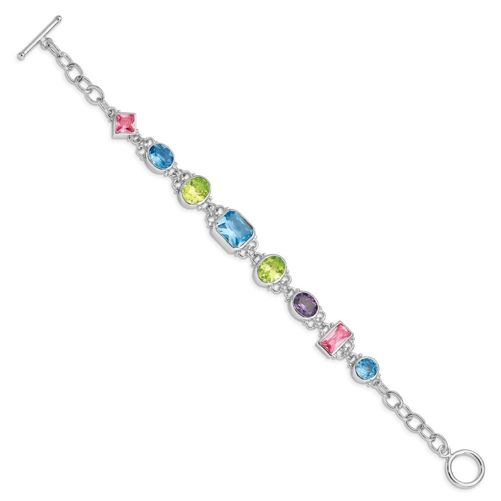 Sterling Silver Rhodium Plated 7.5inch Multicolored CZ Bracelet