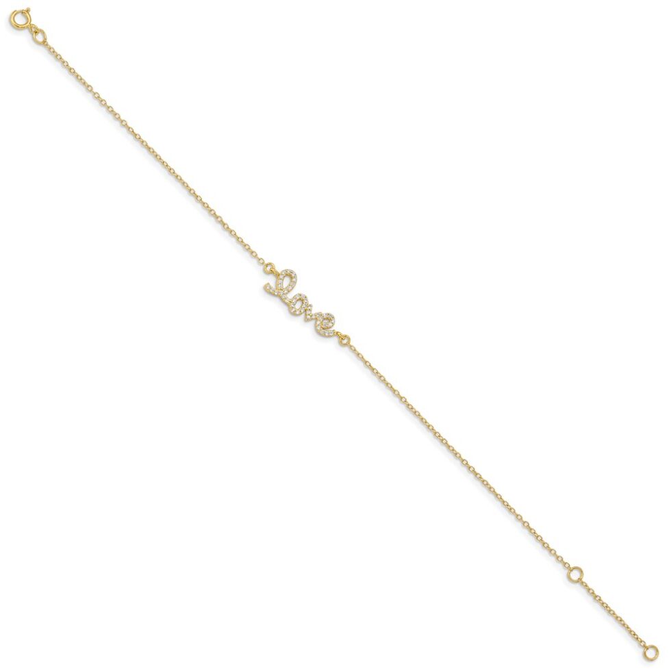 Sterling Silver Gold-plated Love w/CZ w/1in ext. Bracelet