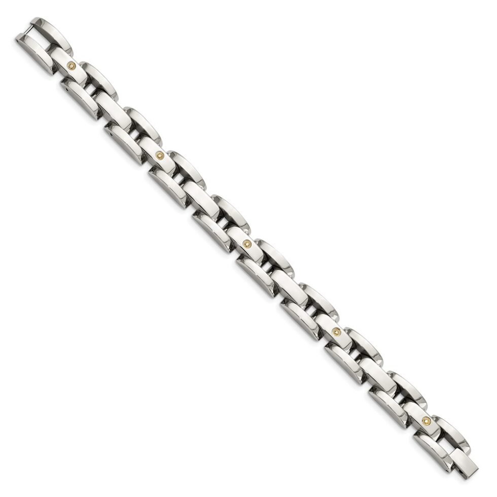 Stainless Steel 8.5in Polished with14k White Gold & Diamonds Bracelet