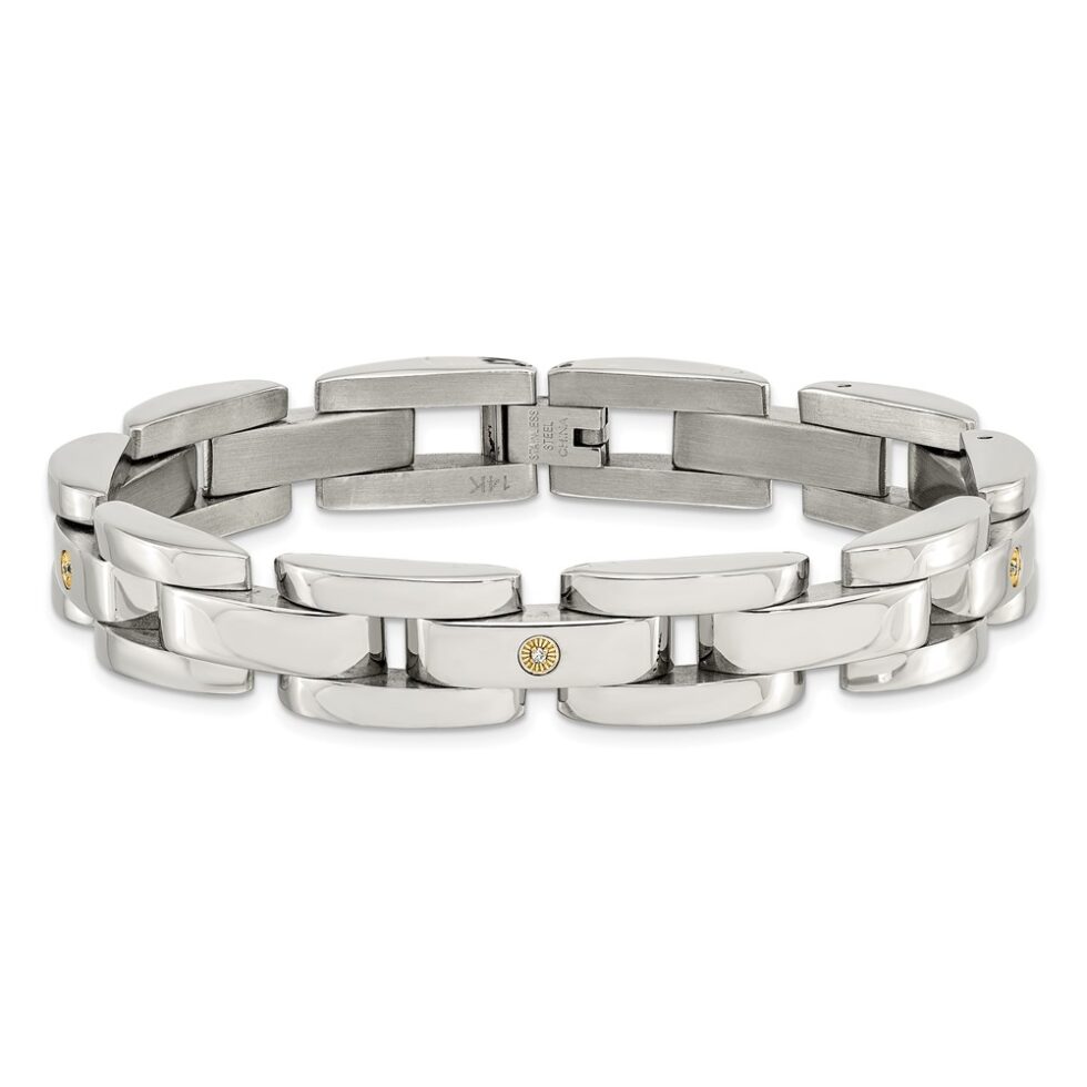 This item: Stainless Steel 8.5in Polished with14k White Gold & Diamonds Bracelet