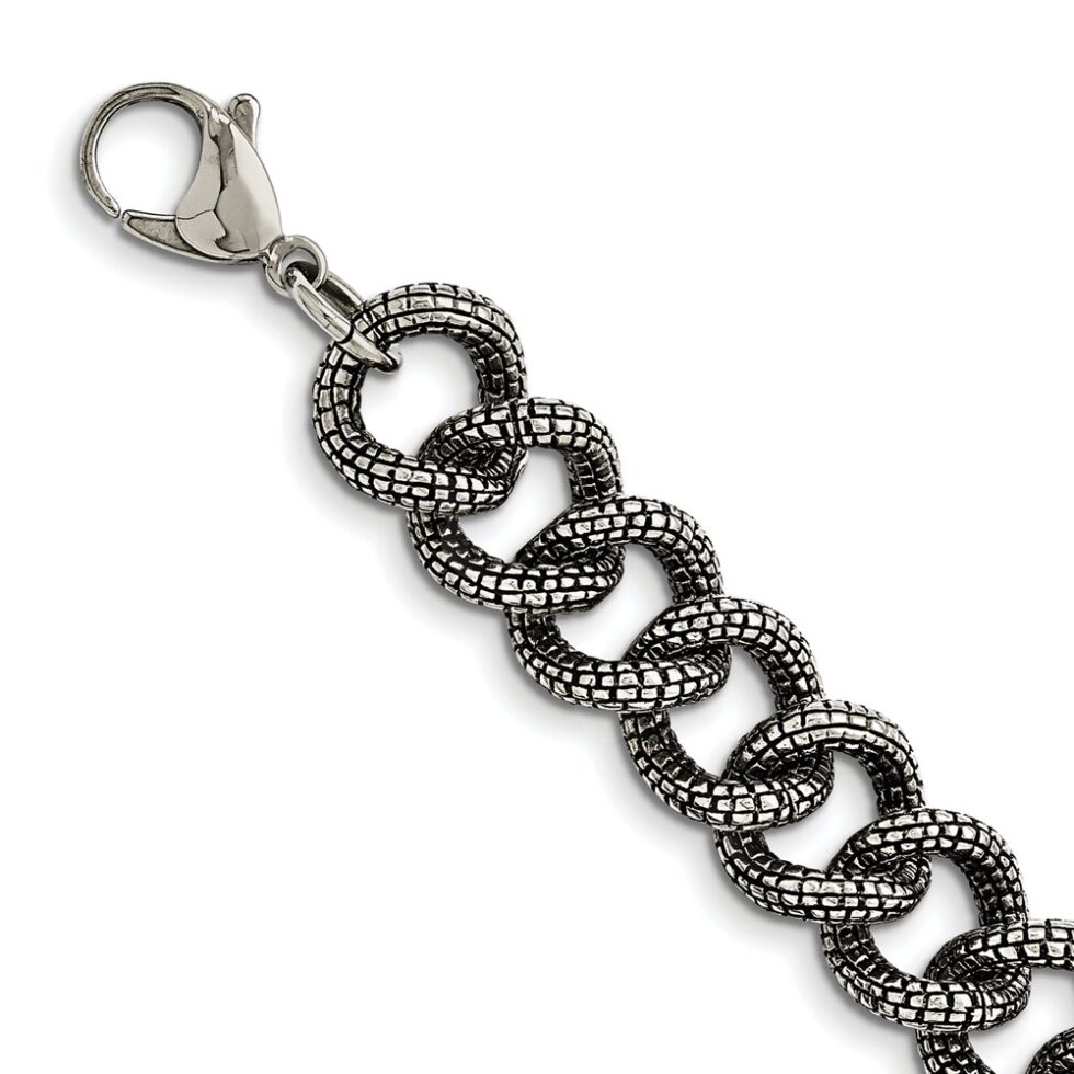 Stainless Steel Antiqued and Textured Link 24in Necklace