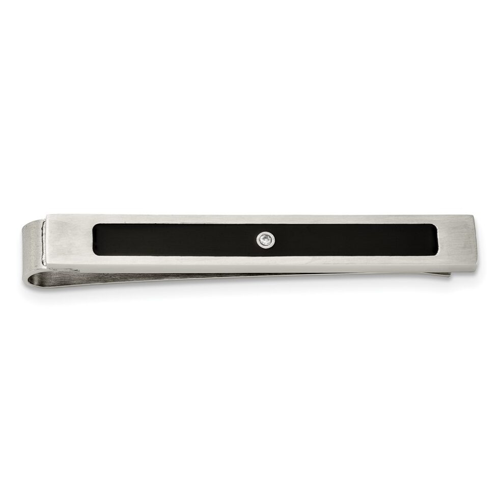 This item: Stainless Steel Brushed & Polished Black Enamel & CZ 4-piece Boxed Set